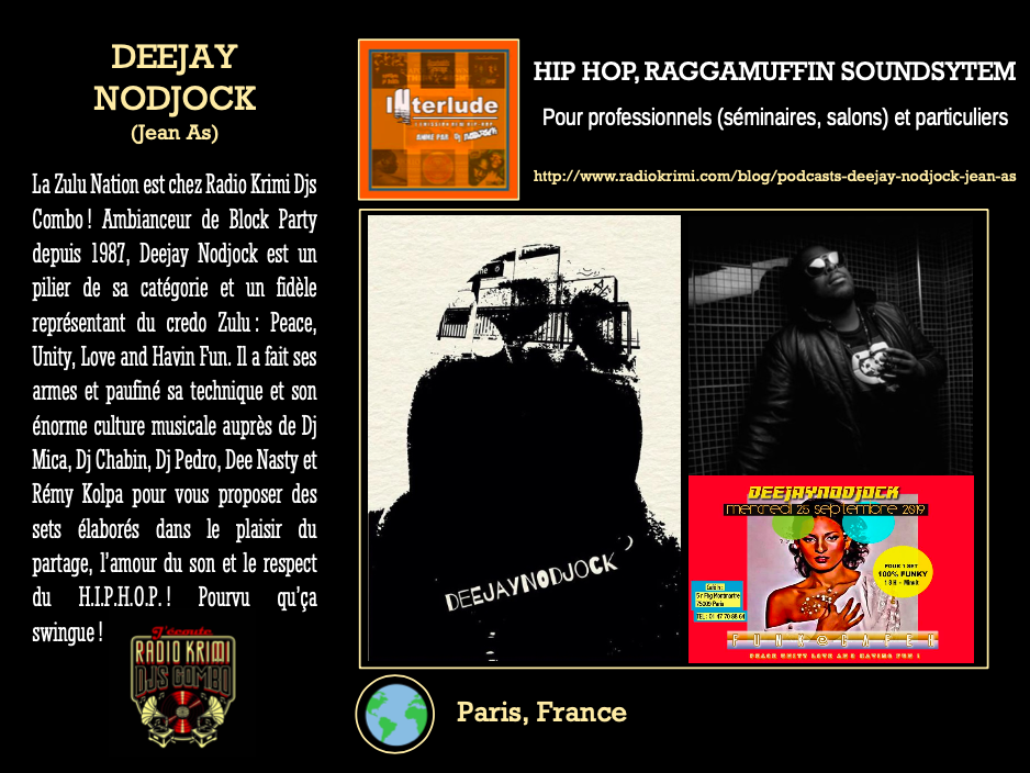 Depuis 1987, Deejay Nodjock ambiance toutes les «Blocs-Partys», que se soit dans une ambiance pure Hip-Hop ou Raggamuffin «Sound-System».